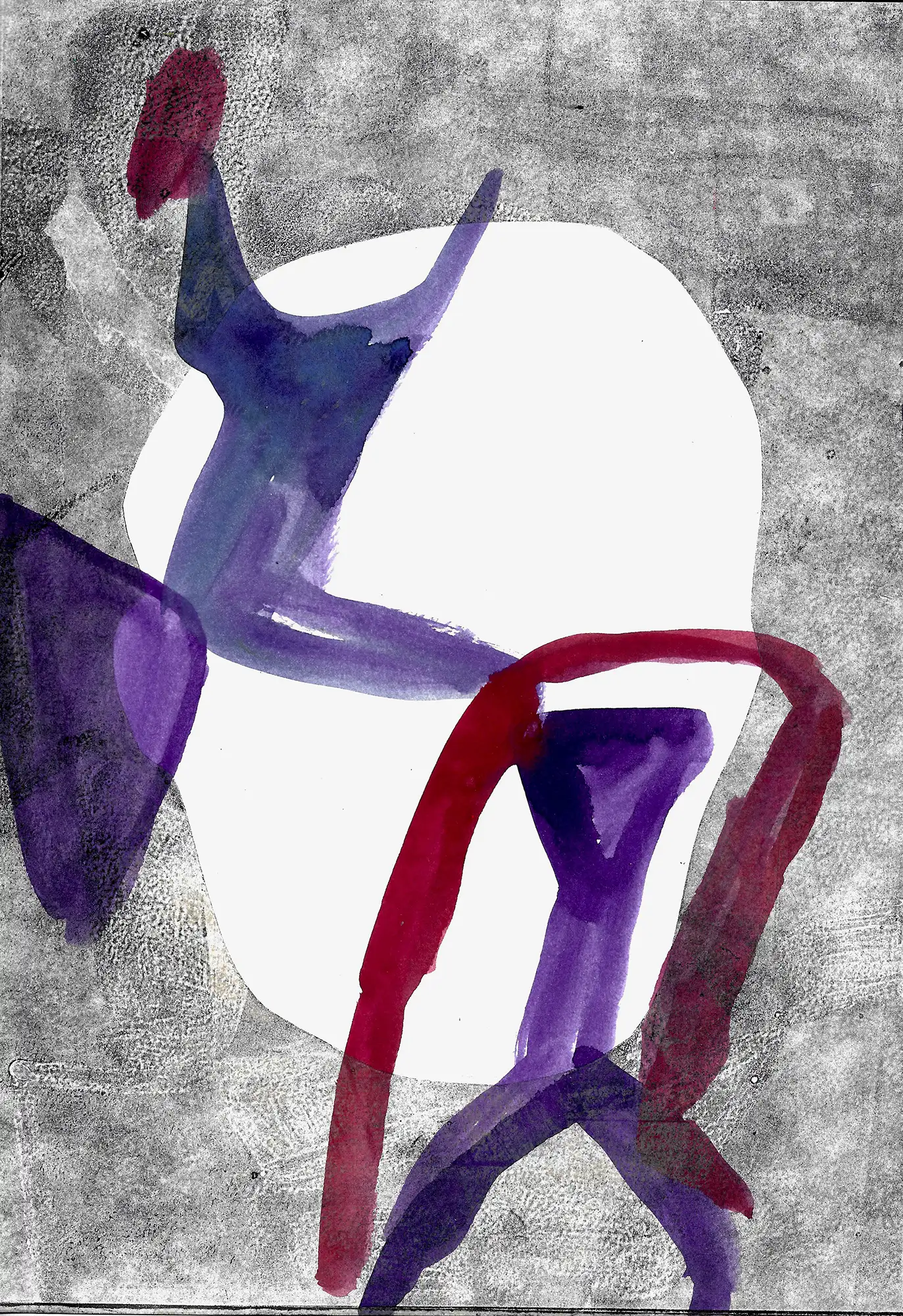„Jarema” to monotypia będąca swobodną interpretacją portretu Marii Jaremy. Praca została wykonana w technice monotypii z użyciem szablonu, farby drukarskiej oraz gwaszu. Punktem wyjścia dla kompozycji stały się charakterystyczne cechy twarzy artystki — wyraźny owal oraz zdecydowany, mocny kształt ust, które przyciągnęły uwagę i zdominowały strukturę portretu. To właśnie one stanowią główny akcent i punkt napięcia w tej syntetycznej, ekspresyjnej interpretacji.