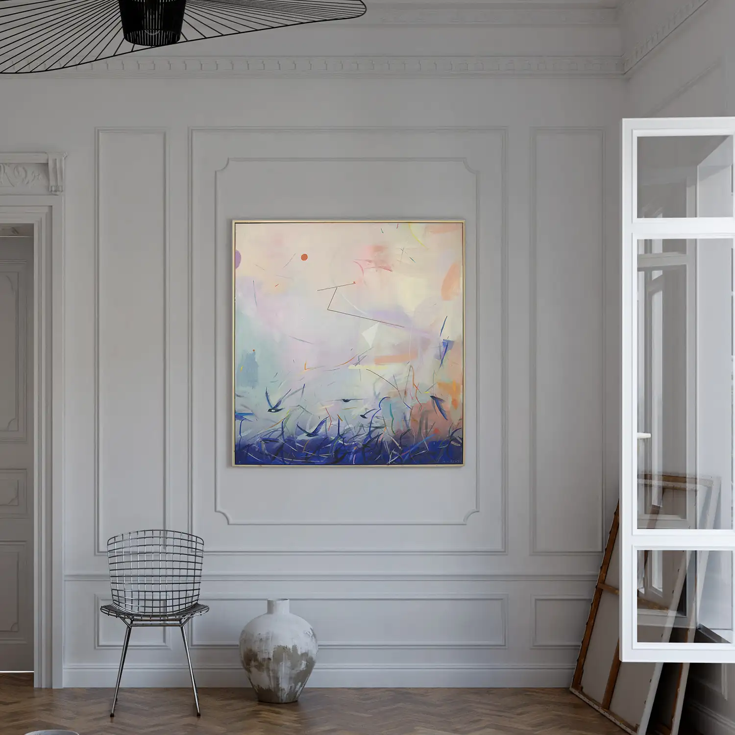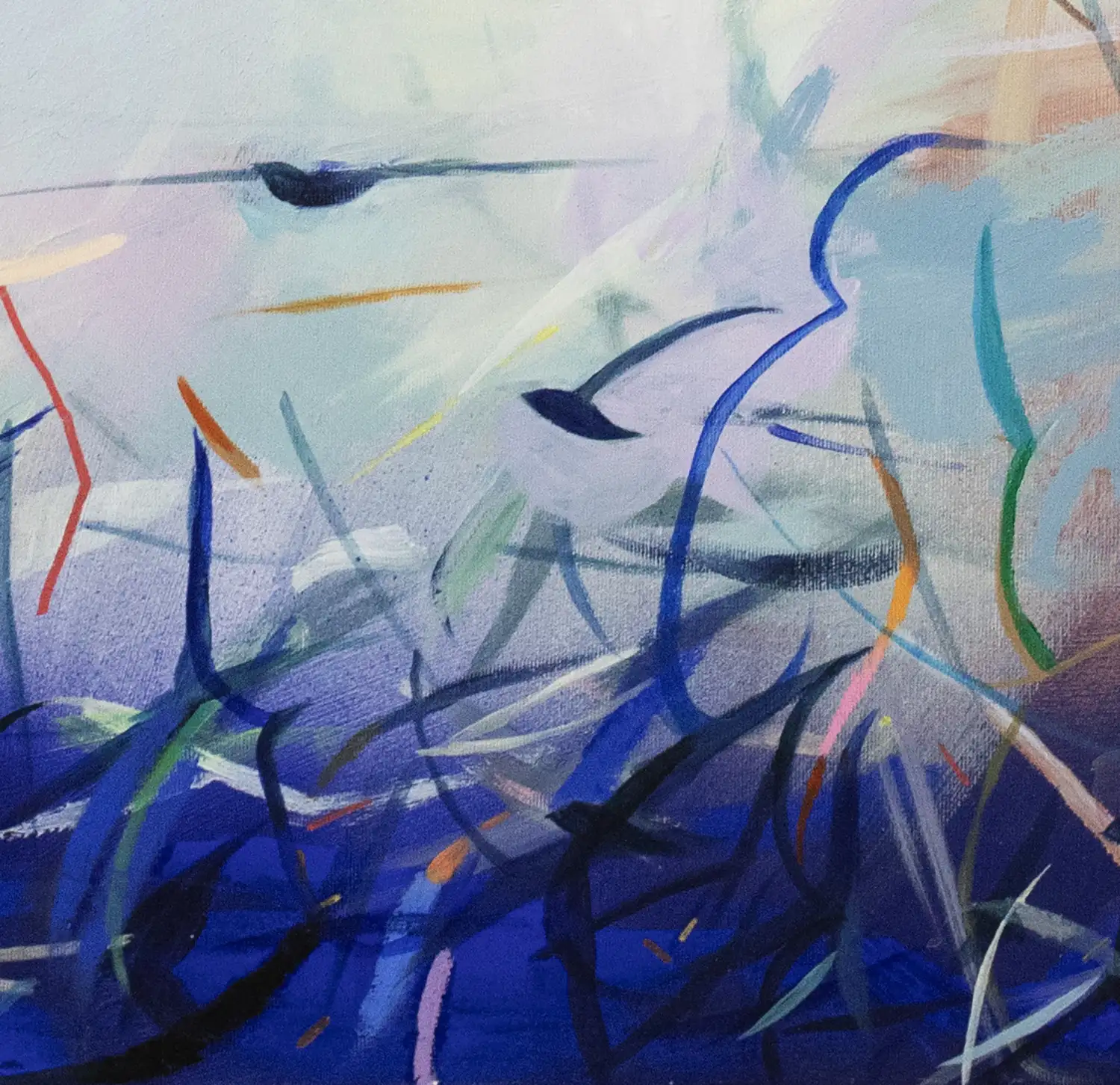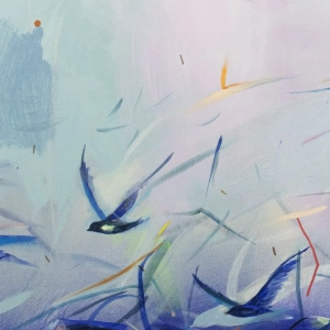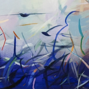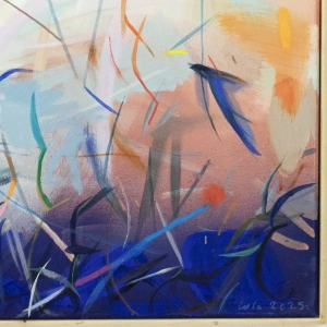 „Materia Czasu nr 5” to obraz powstały w 2025, należący do kolekcji powietrznej, którą tworzę nieprzerwanie od 2020 roku.