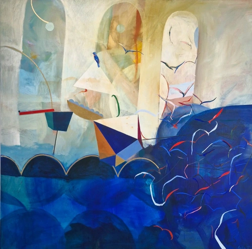 „Materia Czasu nr 8” to obraz powstały w tym roku, należący do kolekcji powietrznej, którą tworzę nieprzerwanie od 2020 roku.