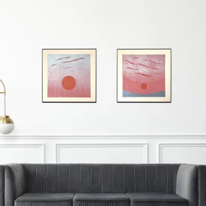 Grafika oprawiona w minimalistyczną drewnianą ramę ze szkłem