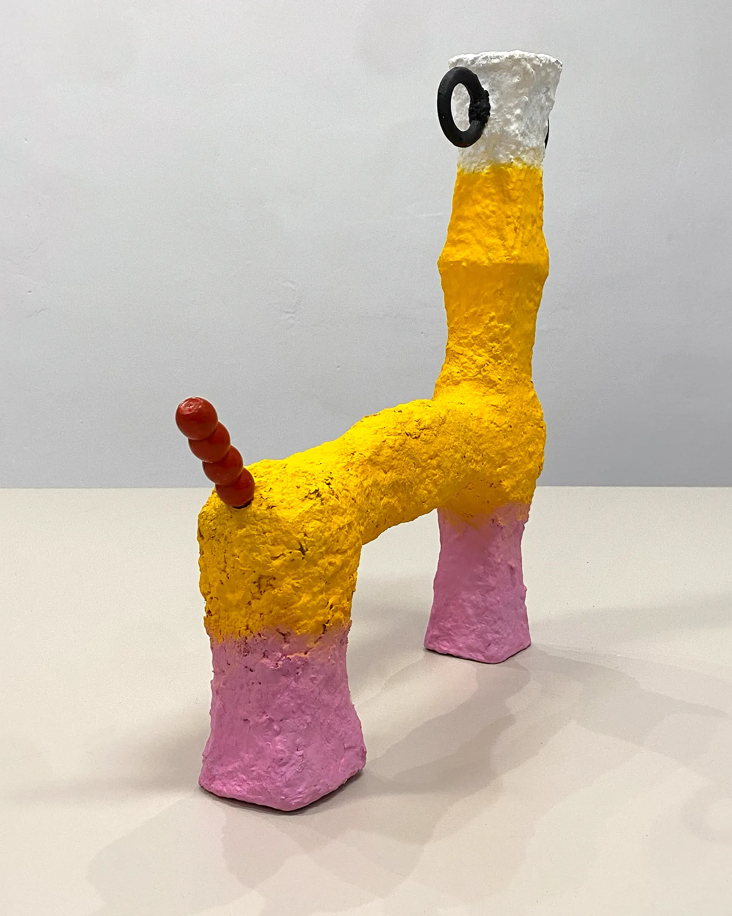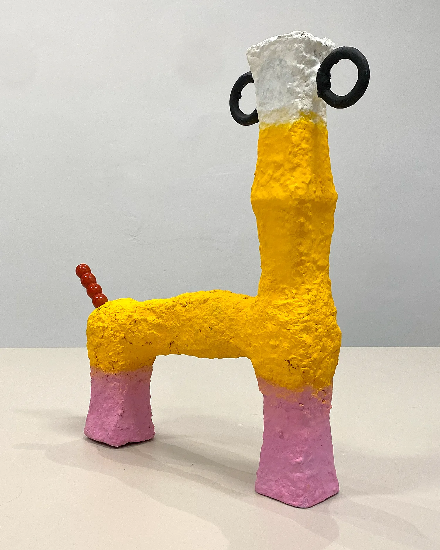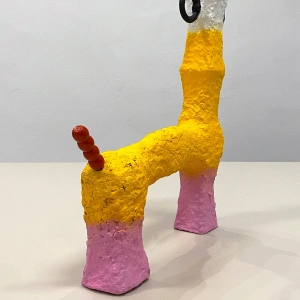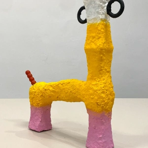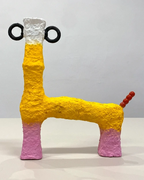 Piesek z serii Rzeźby Towarzysze to prosta, radosna postać – gdzieś pomiędzy barankiem a psem, wesoło merdająca ogonem. Ma w sobie coś z ludowych figurek i łysogórskich kamionek. Naiwne przedstawienie zwierząt, które były bardziej znakiem obecności niż realistycznym przedstawieniem. To totem życzliwości i czystej sympatii. Nie pełni żadnej funkcji użytkowej – jest po prostu po to, żeby być.
