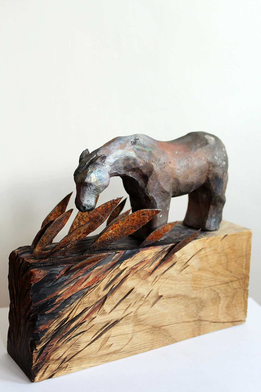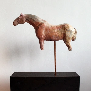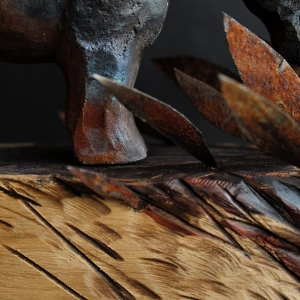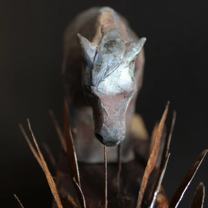 | Dodatkowe informacje | zeźba ceramiczna, podstawa dębowa z elementami metalu, wypał saggar |