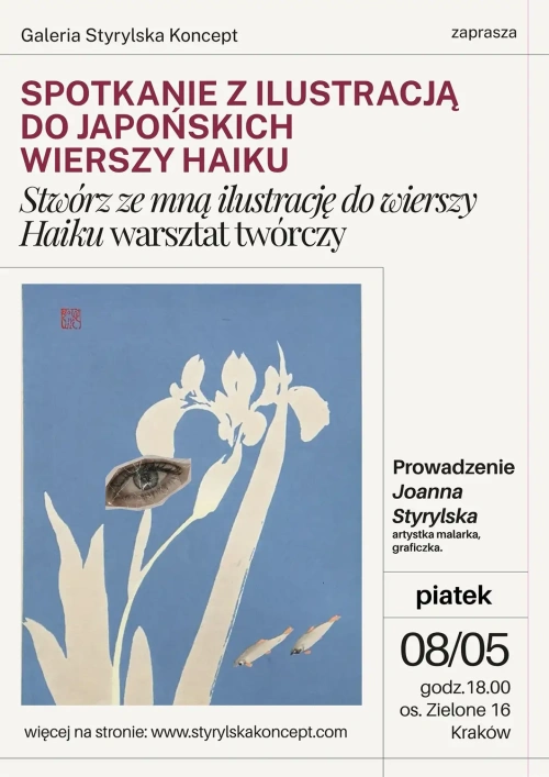 Zapoznasz się z tradycyjną japońską poezją haiku i poznasz stylistykę japońskiej ilustracji. Podczas spotkania opowiem, czym jest haiku, jak działają symbole i metafory w tym rodzaju poezji oraz jak podejść do projektowania własnej ilustracji inspirowanej wierszem.