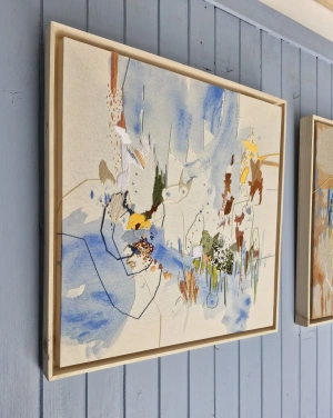 To pełna wigoru i uśmiechu moja interpretacja swobodnych figli, pełna beztroski i zgody na nieokiełznaną szczerą radość. Praca wykonana techniką haftu muliną na surowym płótnie bawełnianym, oprawiona jest w surową drewniana ramę typu american box. To jedna z prac z nowej serii haftowanych kolorową nicią obrazów zatytułowanej "Przebiśniegi" - prac, które dodają siły, cieszą pozytywnym przesłaniem i przełamują marazm.